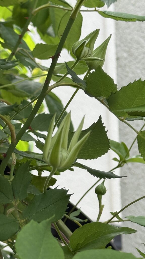 このバラは四季咲きなので、秋の開花を楽しみに待ちたいと思います。
